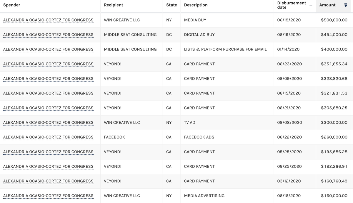 Campaign finance Twitter—much of the $12.5 million (!!) Alexandria Ocasio-Cortez raised this year went to an entity called Veyond! that does card payments. Does anyone have more visibility (or advice on how to dig deeper) on what this expenditure is?pic.twitter.com/Xu7fEVn9fE
