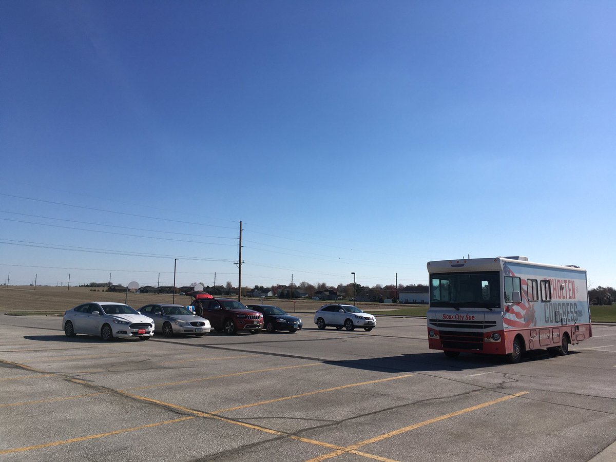 People starting to arrive for a parking lot rally in Carroll, Iowa. This district gets redder as you go west; Carroll is a kind of political midpointpic.twitter.com/EVQBWaTVKa
