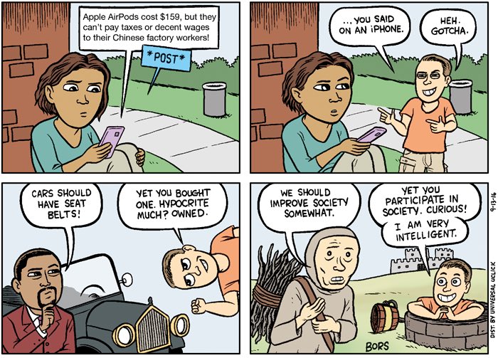 This cartoon has become the standard "no need to think" defense to any accusation of hypocrisy on Twitter. I'm looking forward to when there's a meta-cartoon to post in reply to those who reflexively post it to these threads.