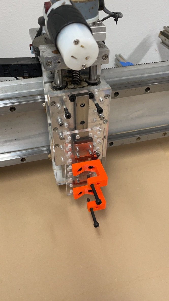 anyone have clever ideas on how to squeeze a large paint pen held in something like the following clamps? everything forward of the metal plate here can probably be redesigned. either need to squeeze the pen or externally add air pressure.pic.twitter.com/KQZxsh0aXp