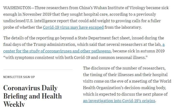 Who could have guessed in 2020 that the virus lab where they study the virus that caused the pandemic in the city where the pandemic started should not be immediately dismissed as a possible origin for the pandemic.