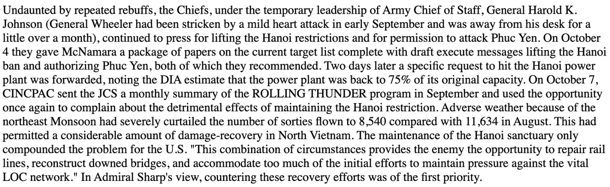 How did you determine that a power plant, which Hanoi defended with US POWs, had no military value? In the Pentagon Papers, there's an argument that it had limited military value as well as limited effect on civilian morale, and wasn't worth it. https://www.mtholyoke.edu/acad/intrel/pentagon4/pent4.htm …pic.twitter.com/3WUGx0e3nA