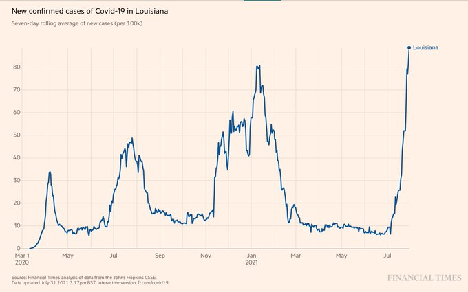 I might argue that it's getting worse than it was before. Vaccines work, but that means that your horrible doom spike produces a horrible doom spike of hospitalizations.... at much better than previous ratios of cases -> ICU visits. Which won't matter if cases dagger.pic.twitter.com/wyhmNPvhG5
