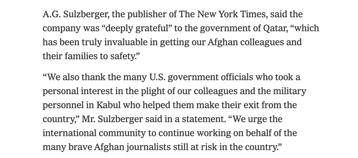 This boastful article in the NYT about evacuating their employees from Afghanistan is also an interesting catalogue of their conflicts of interest, calling in favors from Qatar, Hillary Clinton, and the very State Department whose mishandling of the situation they are coveringpic.twitter.com/4lhkFKdsJW