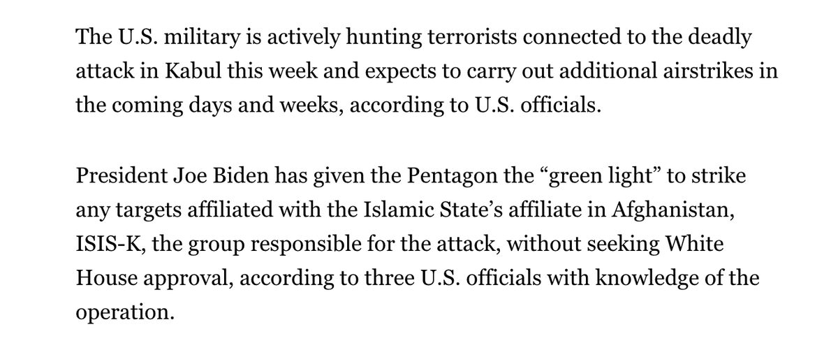 Another good example of "how would you react if Trump had done this". The Pentagon and intelligence agencies that just proved their incompetence in Afghanistan are now encouraged to kill anyone there they think is a terrorist, without Presidential or Congressional oversight.pic.twitter.com/q2nDee9veD