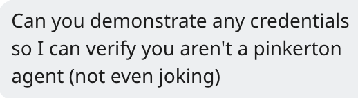 I guess you're supposed to send them a photo of a lack of Pinkerton ID.