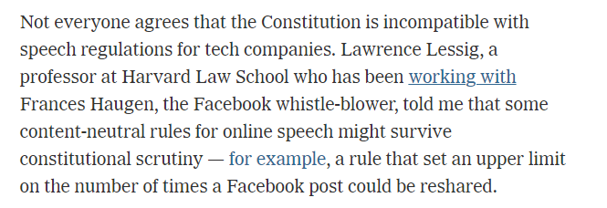 I wonder if @lessig also thinks that Congress could pass a law limiting the number of subscribers a newspaper can have, issues it can print, or page views it can obtain, or cap the number of MSNBC viewers after which the channel becomes unavailable? pic.twitter.com/eWTZaRFSVx