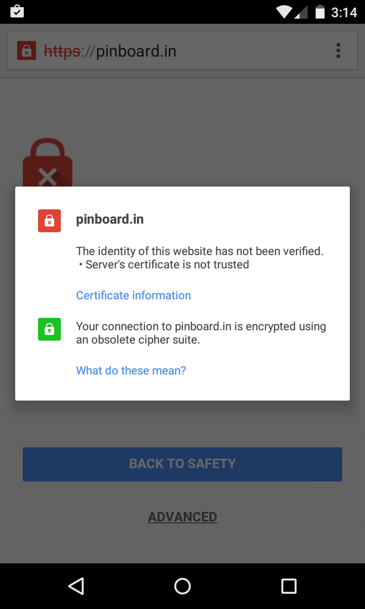 @Pinboard Seem can't login through Pinner app either on Android. iOS & Safari OKpic.twitter.com/P8ZNDCn466