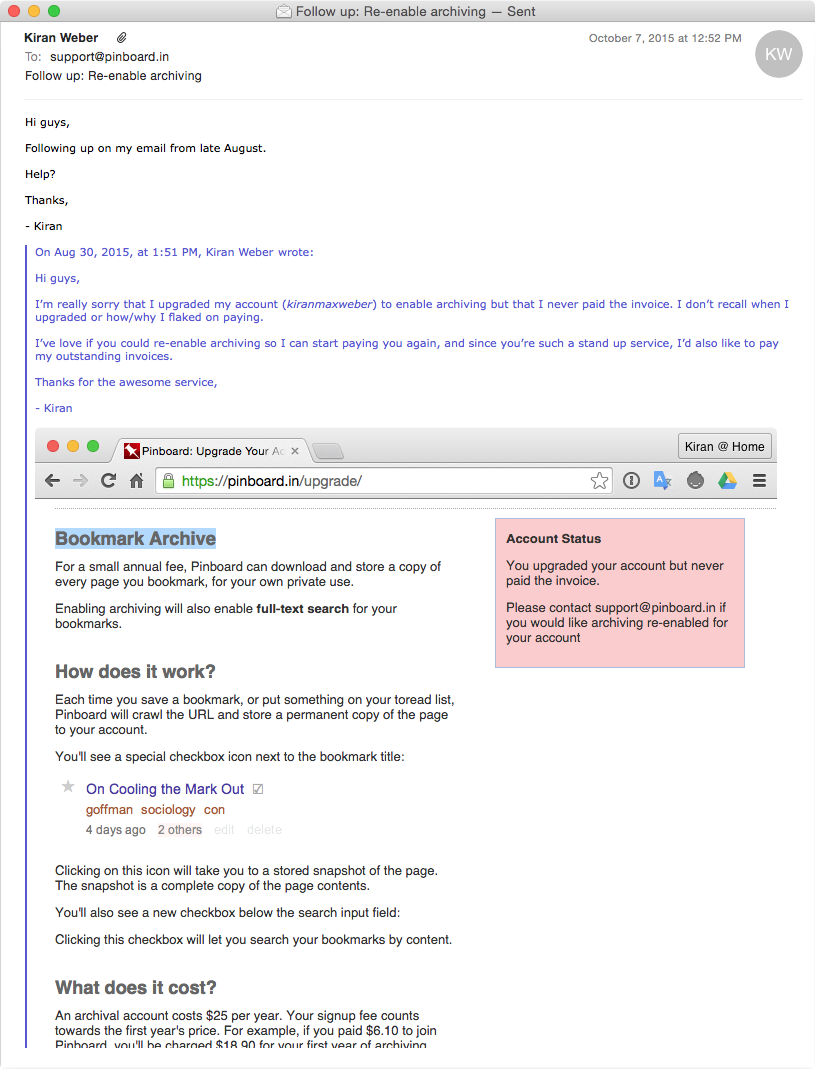 @baconmeteor Hi Maciej. I've gotten no response from Support (see attached). Can you help? Thanks! /cc @pinboardpic.twitter.com/vyi7TLYlwQ