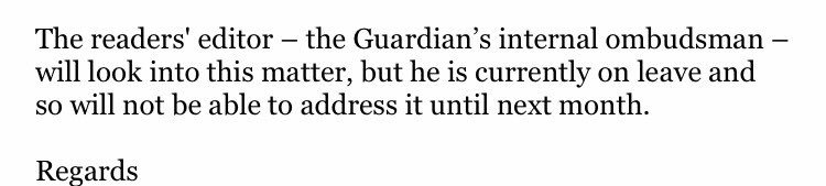 Guardian’s reply to their WhatsApp fiasco—really—is that “our ombudsman is on leave until next month”. Amazing.https://twitter.com/harhoo/status/824379161213108225 …