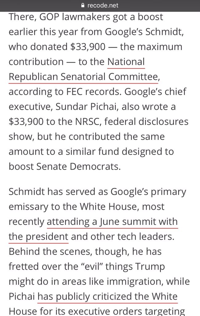 Sundar Pichai is playing both sides of the field with max donations, but Schmidt just funds Republicans:https://twitter.com/GTP_updates/status/883060237548359681 …