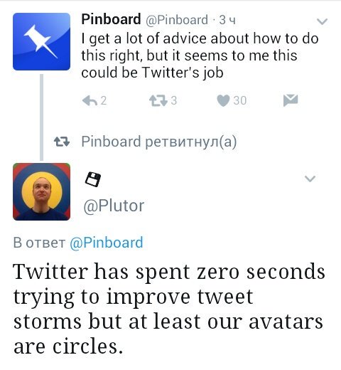 Twitter has spent zero seconds trying to improve tweet storms but at least our avatars are circles.