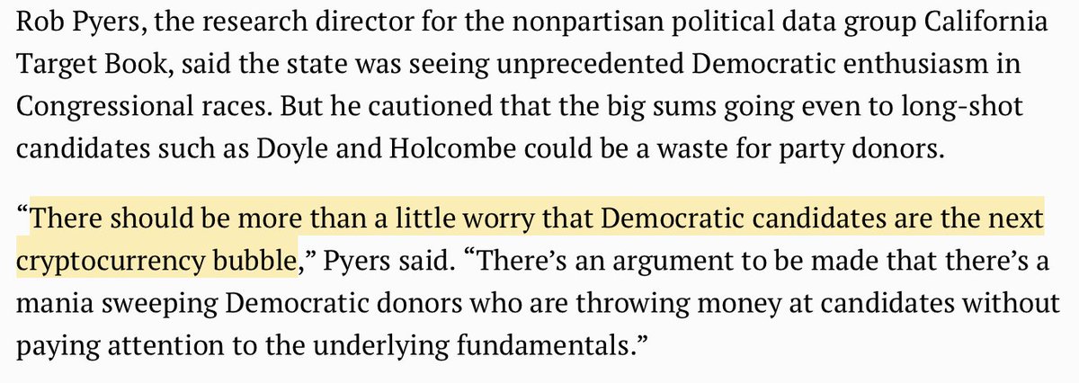 I wonder if all the people volunteering for @jjonesholcombe and @Marge4Congress realize they're the 'next cryptocurrency bubble'. https://www.mercurynews.com/2018/02/01/democratic-challengers-outraise-seven-of-californias-republican-members-of-congress/ …pic.twitter.com/1DeXRtV0j7