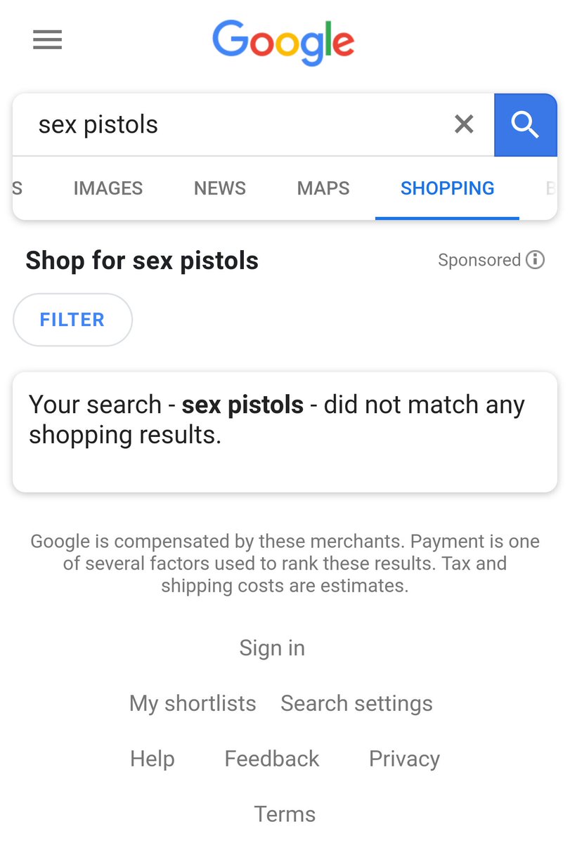This is so Orwellian. @Google is now protecting me from Sex Pistols T-shirts. https://www.zerohedge.com/news/2018-02-27/google-censors-guns-removes-shopping-results … cc: @FTC pic.twitter.com/JJMKC5zOzv
