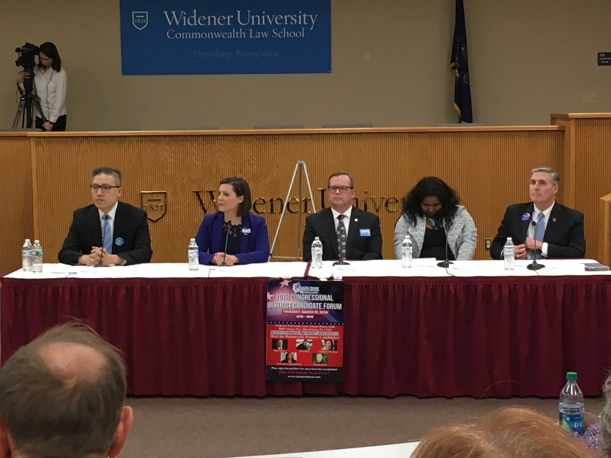 Hartman starts with “thoughts and prayers”. Really. Comes from family of gun owners, worked in Afghanistan where she packed heat. Demands universal background checks, unshackling CDC, raise age to 21, excited that corporate America is leading