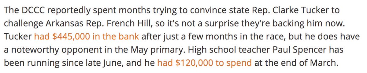Glad to see that @DKElections is not treating the competitive primary in AR-2 as a done deal. This district is a very good test of whether "Republican lite" centrists or true progressive candidates can win in red state primaries.pic.twitter.com/IJSMi8G0sj