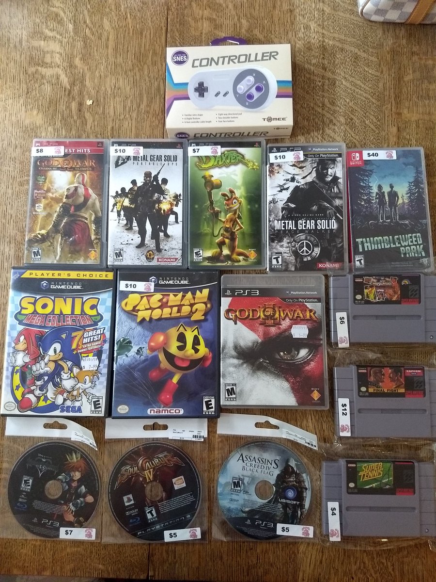 #retrogames haul from@PinkGorillaLLC My faves are Final Fight SNES (in my all time top 10) limited run of@thimbleweedpark and rare in Europe Pac Man World 2 for@NintendoEurope#gamecube Also I now need to buy a#PSP to play the amazing games I bought