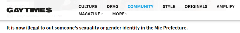 [Thread] Please. Please actually look into what you're writing about. Mie Prefecture did NOT "make it illegal" to out someone. Mie Prefecture is currently /planning/ to implement an ordinance that will likely ban people from outing others. (1/?) pic.twitter.com/GjJiwJrJrB
