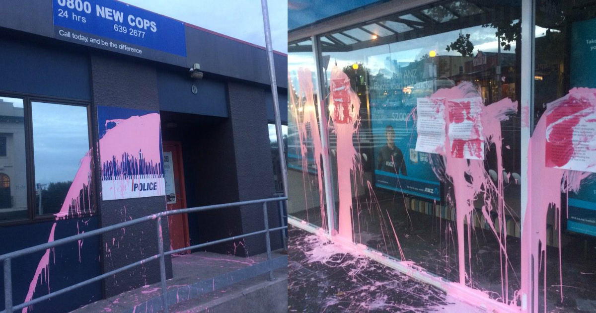 ニュージーランドの反ピンクウォッシュの活動家がイスラエルのLGBT利用、企業の利用、プライドでの警察による暴力に抗議して、ピンクのペンキをぶっ放している。“@pinknews: http://p.ink.cx/1BTkqjs pic.twitter.com/9X2d3YruD5”