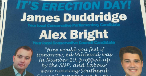 #Conservative @JamesDuddridge wins re-election after declaring it 'Erection Day' http://p.ink.cx/1Ilb4jf #GE2015pic.twitter.com/CNSOfhLBMr