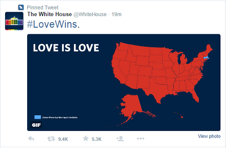 White House celebrates #SCOTUS marriage ruling with rainbow profile http://p.ink.cx/1BS6Aiu pic.twitter.com/C9ydjsgSuF