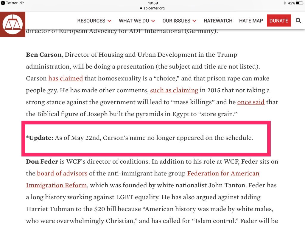 Trump's HUD Secretary Ben Carson is attending anti-LGBT conferencehttp://www.pinknews.co.uk/2017/05/23/trumps-hud-secretary-ben-carson-is-attending-anti-lgbt-conference/?utm_source=PNFB&utm_medium=SocialFB&utm_content=FBN&utm_campaign=PNFacebook …