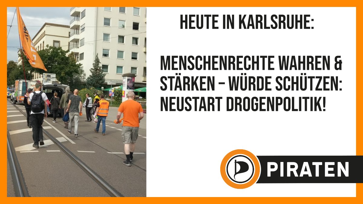 @Piratenpartei steht für eine repressionsfreie#Drogenpolitik und fordert ein Ende der gescheiterten Prohibition. Deswegen haben wir heute zur Kundgebung und Demonstration in#Karlsruhe aufgerufen. Danke an den#Hanfverband Rhein-Neckar, welcher mit dabei ist