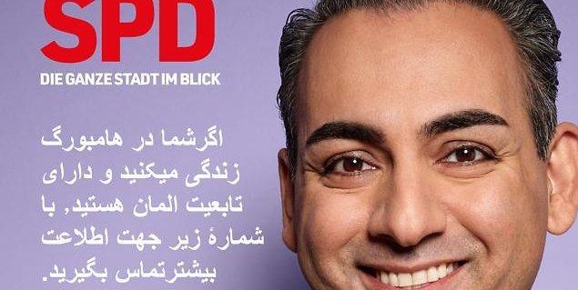 Poster mit persischer Schrift: AfD hetzt gegen Hamburger SPD-Mann – der kontert cool http://bit.ly/2GDBQXM pic.twitter.com/aX6qkKd4sR