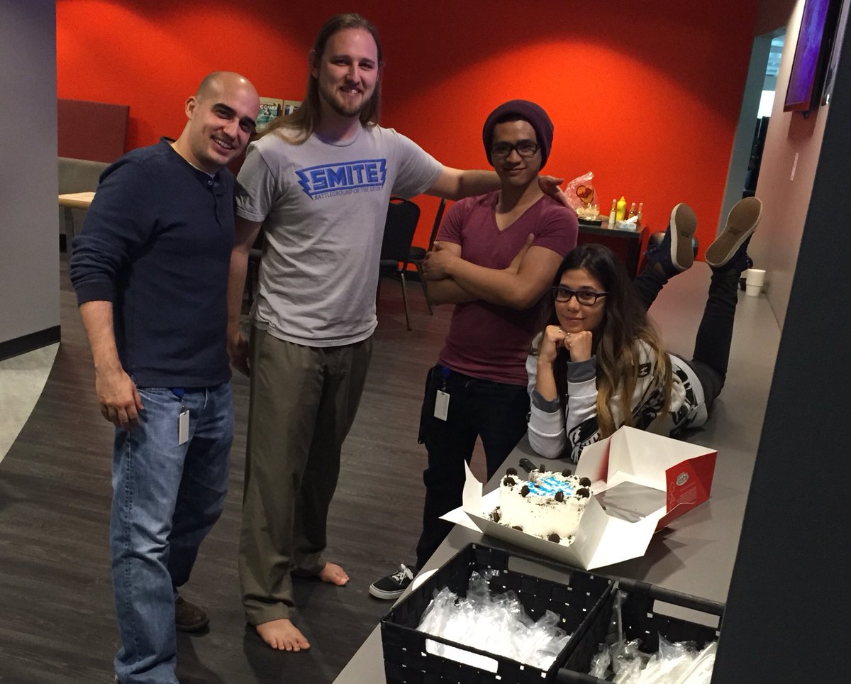 Thanks all for the birthday wishes! Enjoyed cake with smite designers @HiRezFish @HiRezBawwwcas and @hirezkama !pic.twitter.com/HVxSEGYokg