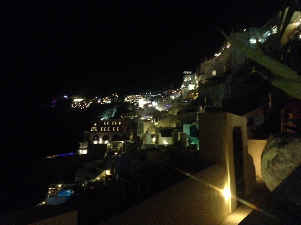 View up Fira at night
