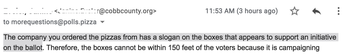 Our pizzas got turned away by the Cobb County election officials :(