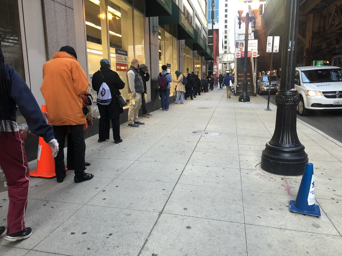 Unbelievable turnout for early voting in Chicago. The Loop Super Site at Clark and Lake opened this morning and it’s the only early voting site open in the city for now. More to come soon. Line wraps around an entire city block. #vote #chicago @ABC7Chicago pic.twitter.com/fJj5kt5eQq