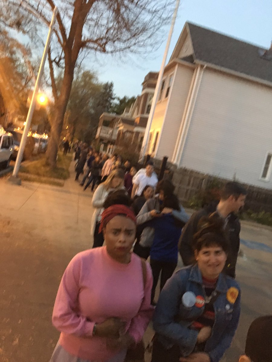 @pizzatothepolls Humbolt Park library line is way down the block. Pizza please!pic.twitter.com/X947wOLcOB