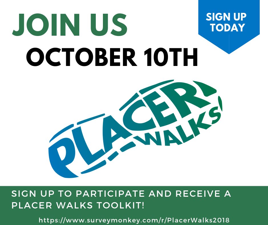 Oct. 10 is National #WalkToSchool day, but with #PlacerWalks you can participate in learning & sharing the benefits of walking wherever you are - school, business or even in your neighborhood! Receive a free #PlacerWalks toolkit: https://www.surveymonkey.com/r/PlacerWalks2018 …pic.twitter.com/OIL9FOfKEy