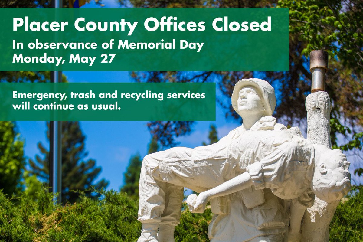 Friendly reminder that our offices will be closed in observance of Memorial Day Monday, May 27. Emergency, trash and recycling services will continue as usual.pic.twitter.com/J2PGgxiYDp