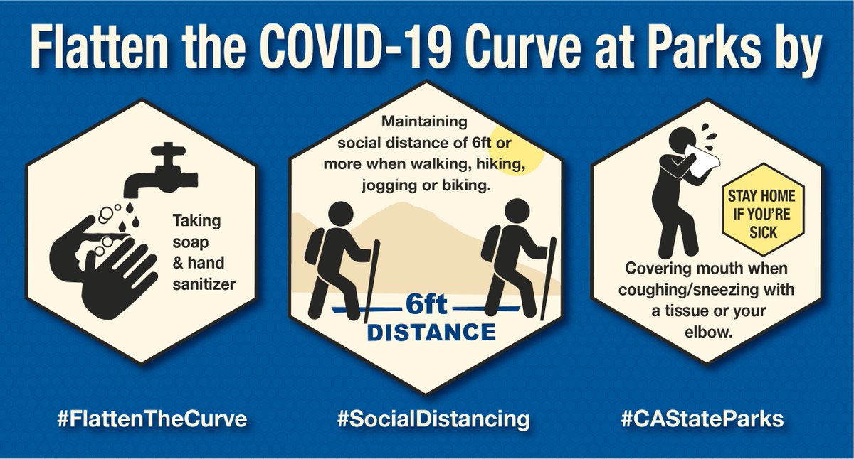 @CAStateParks has temporarily closed vehicle access to state parks and beaches in CA. Non-campground outdoor areas of parks, including trails and beaches, remain open, but social distancing guidelines of ... #Donner #FolsomLake #KingsBeach #FlattenTheCurve https://www.parks.ca.gov/NewsRelease/944 pic.twitter.com/3qaGq1BoEn