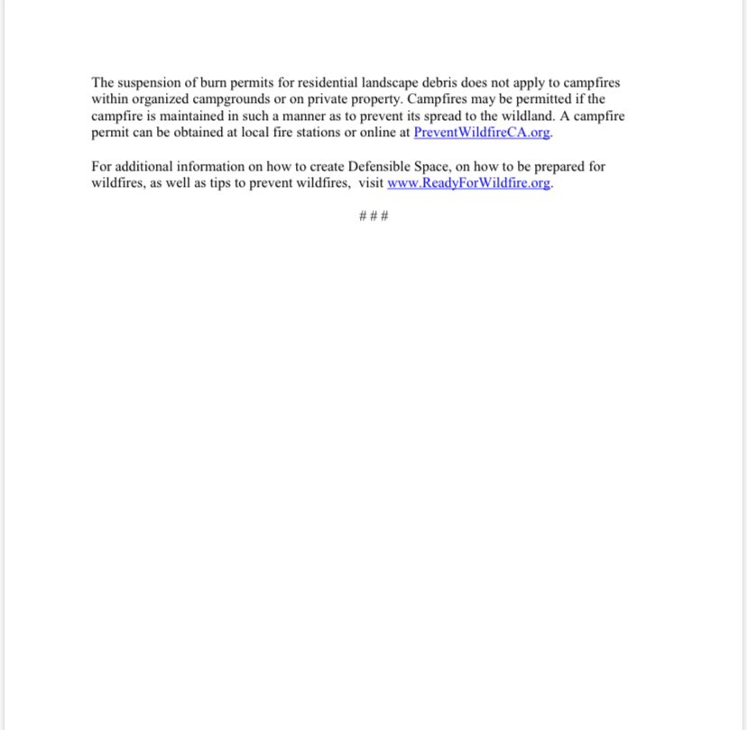 The increasing fire danger posed by dead grass and hotter, drier conditions is prompting CAL FIRE to suspend all burn permits for outdoor residential burning within the state responsibility area of Nevada, Yuba and Placer Counties. pic.twitter.com/M9eFTS9U1f