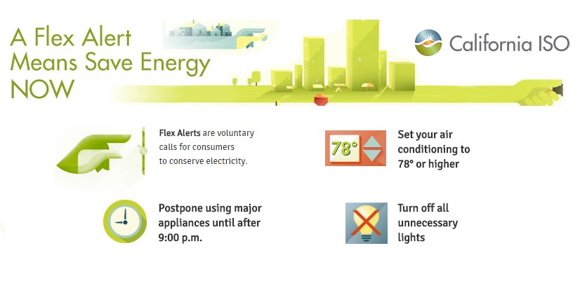 .@California_ISO has issued a #FlexAlert. Conserve electricity from 2pm-9pm. More info here: http://bddy.me/2gotSbr . pic.twitter.com/U4MXR8R14r