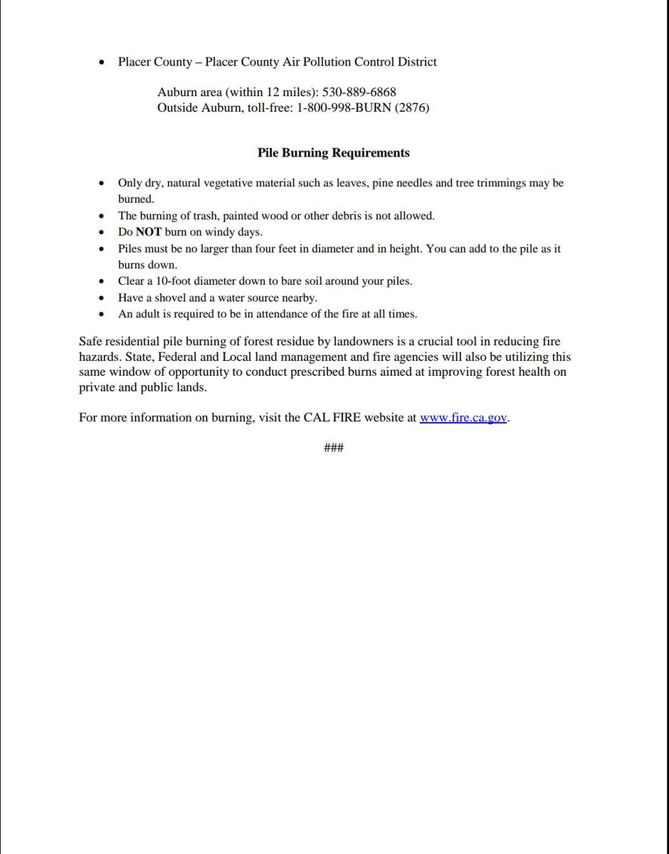 Cal Fire Nevada-Yuba-Placer Unit termination of Burn Ban Proclamation effective Monday November 6th 2017 at 8 a.m. pic.twitter.com/qDKUDrz4fG