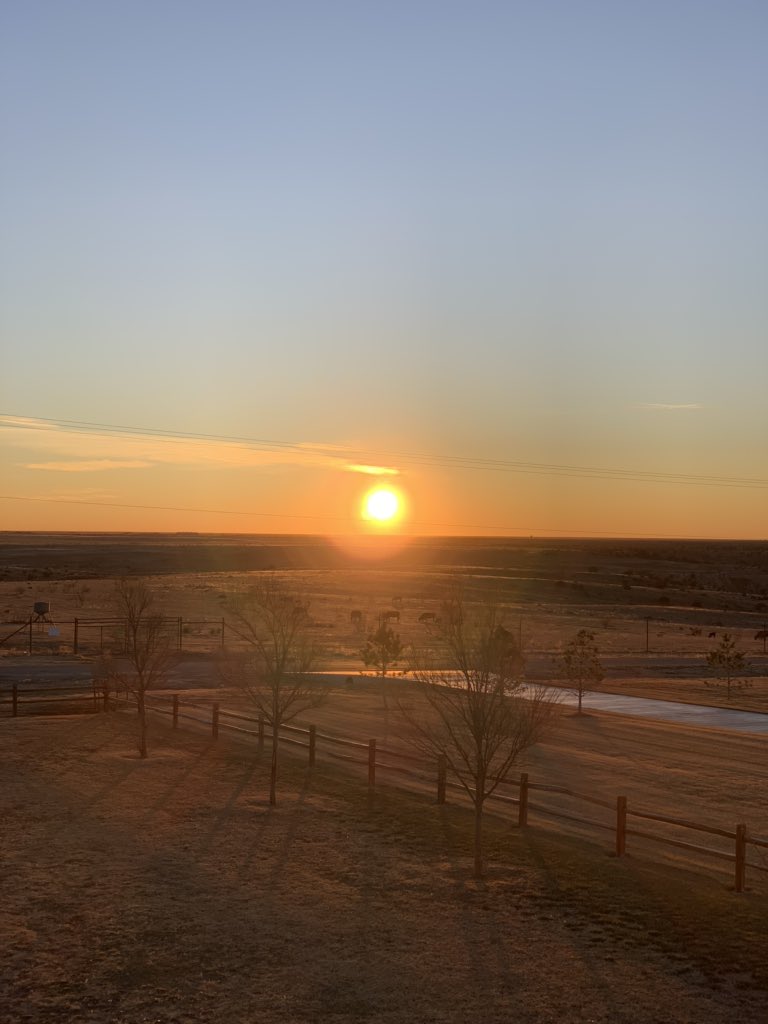 It is a delight to be back in cowboy land! Early sunrise over the prairie. Well, close to it. Cattle calmly eating outside the hangar ...