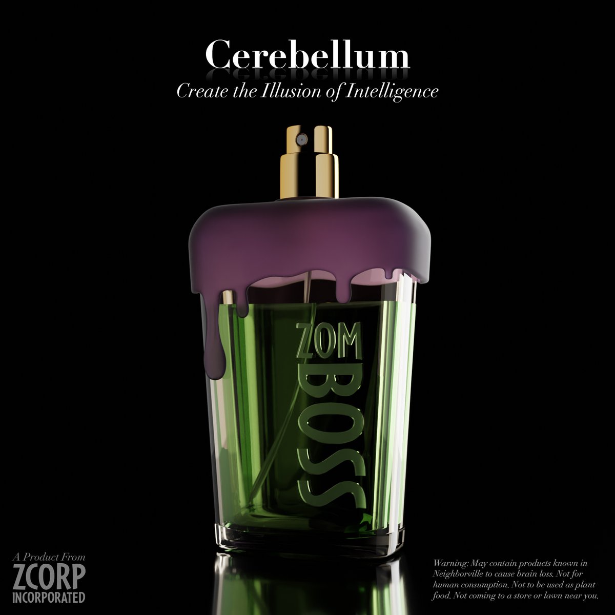 A brand-new product from ZCorp. A fragrance for the (not very) discerning Zombie and fiend. CEREBELLUM™ With base notes of sadness and stale baked goods, mid notes of sadness and wet cardboard, top notes of bad breath and puke. "Create the Illusion of Intelligence..."pic.twitter.com/Mvp82F7fUI