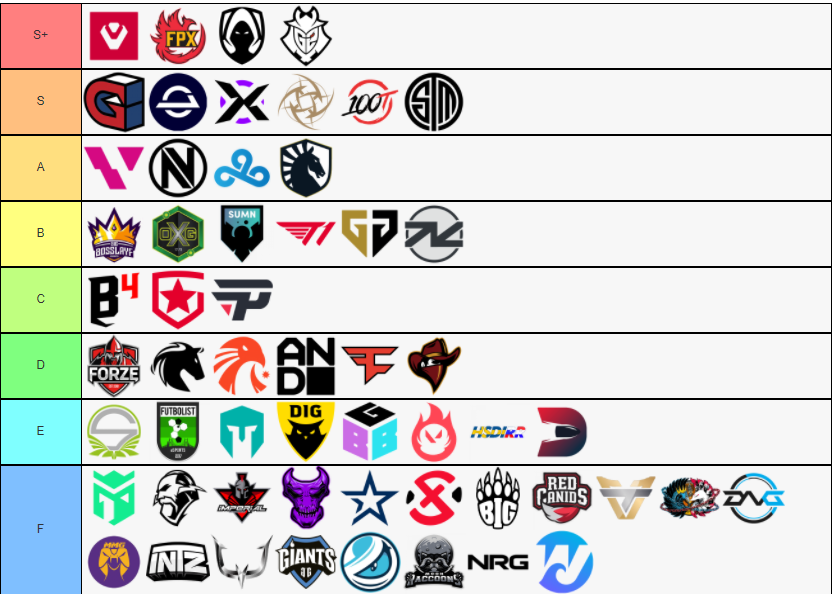 yo here's a better Tier Maker that includes a lot more teams for next week , it's ordered as Asian teams then Brazil teams then EU teams then NA teamshttps://tiermaker.com/create/valorant-teams-2020-519676 …