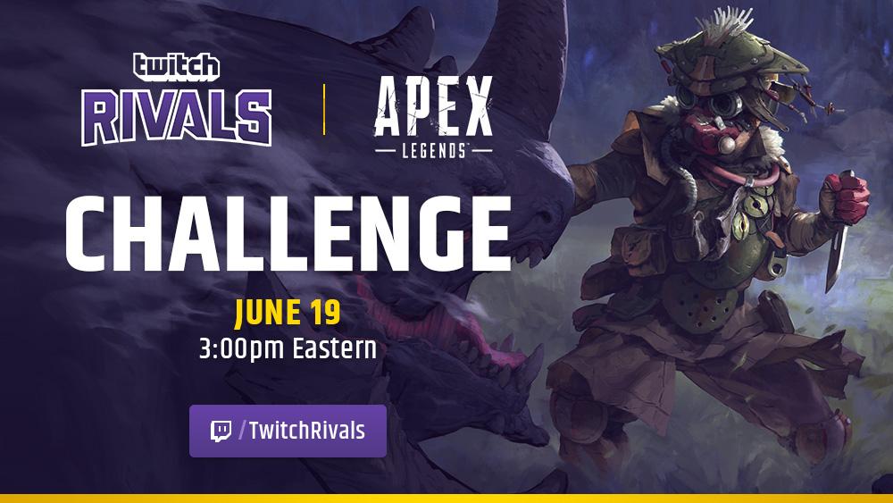 #TwitchRivals@PlayApex Challenge! Tune in on Monday, July 1st for all the action! http://twitch.tv/twitchrivals pic.twitter.com/m86qKsCOjP