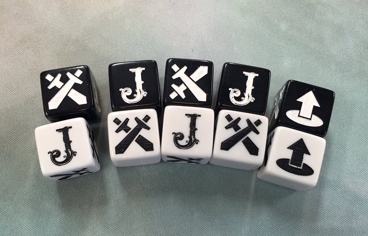 Judgement prototype dice! Our resident maths nerd devised an amazing combat mechanic using special symbols! :)pic.twitter.com/zeuHFqWCZH