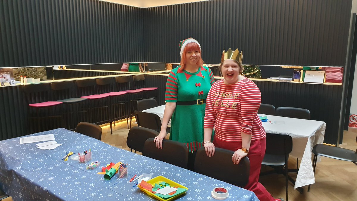 @TRwinchester is about to begin. Jo (Playmakers Director) and Kat (Engagement Producer) looking festive!