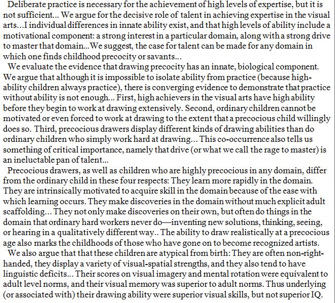 Precocious drawing abilities arise more from innate talent, rather than from the much-famed "deliberate practice". https://books.google.de/books?id=ouI2DwAAQBAJ&pg=PT181&lpg=PT181&dq=%22Why+Deliberate+Practice+Is+Not+Enough%22&source=bl&ots=6RdqMOYB_P&sig=ePj8Xj9yQ5PTFNU-chFR7IiL9UQ&hl=de&sa=X&ved=0ahUKEwin_c6lh6vbAhWEBywKHTYuAy0Q6AEINjAC#v=onepage&q=%22Why%20Deliberate%20Practice%20Is%20Not%20Enough%22&f=false … pic.twitter.com/pSTEljsj3K