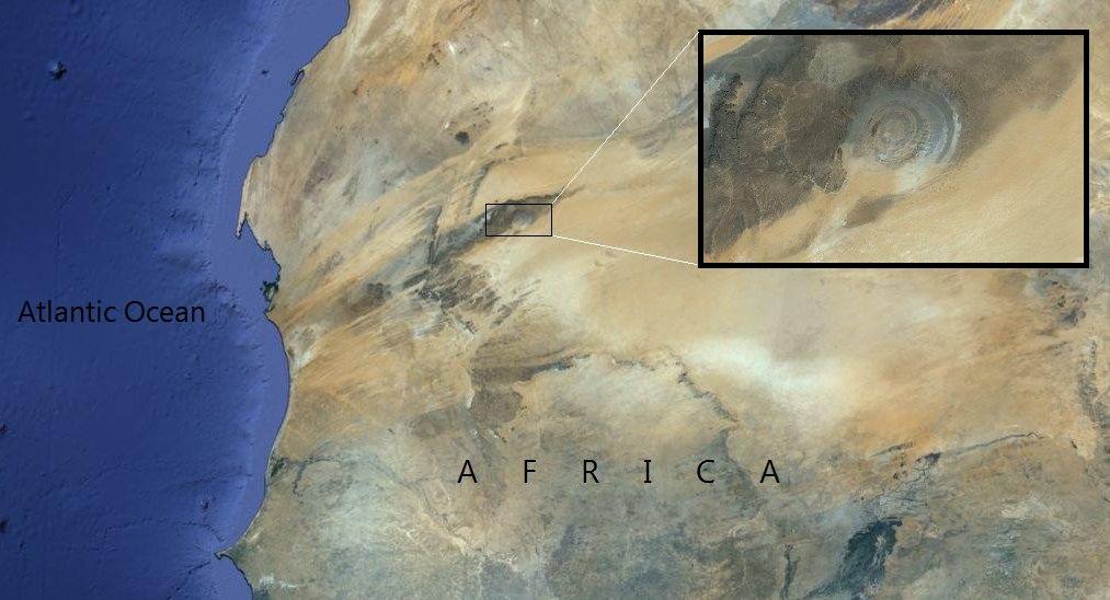 The eye of richat otherwise know as the eye of the sahara is quite the mystery. It was first discovered from a space mission. It's not much to look at from the ground. Funny enough over 1000 years ago it would have been on the coast of the Atlantic Ocean.pic.twitter.com/Zss9wL5d5J