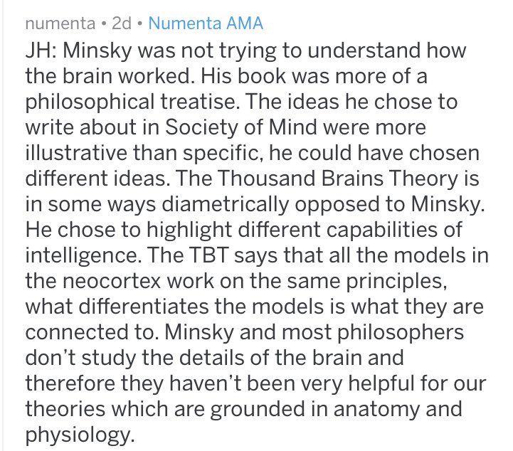 An unexpected (to me) and very interesting response from Jeff Hawkins...the