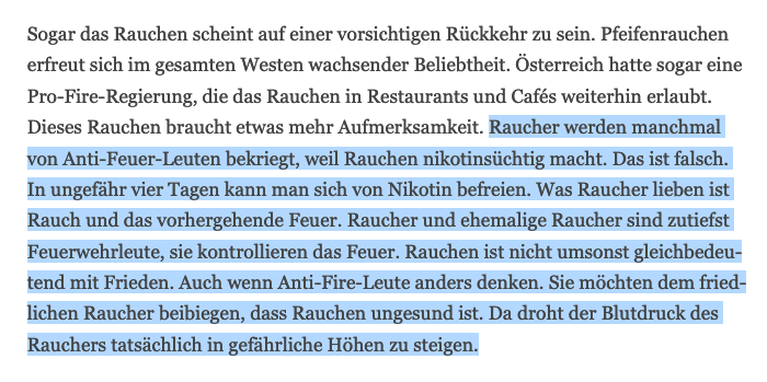 Das wirft doch nur die Frage auf, was er da raucht.