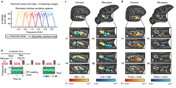 Humans (but not macaques) have cortical regions with a strong preference for harmonic tones compared to noise, perhaps due to the human brain's needs for processing speech and music 🎶 https://go.nature.com/2K5z95j  pic.twitter.com/1i2IHfJkBe
